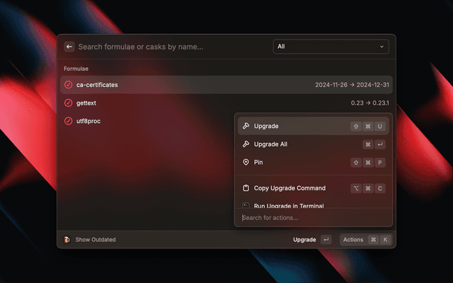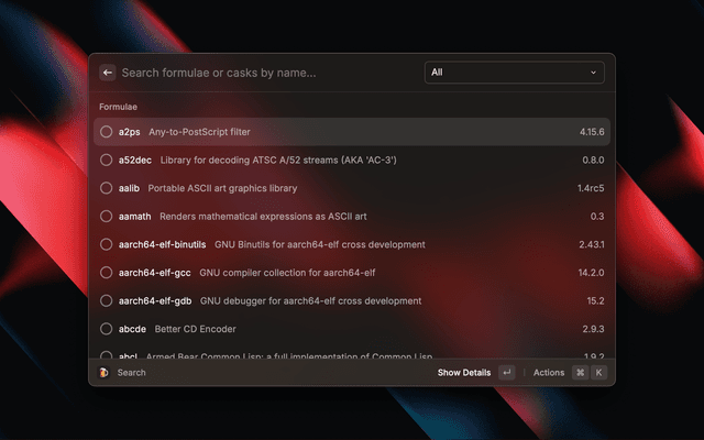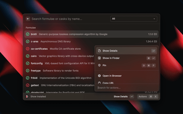 Search and manage your brew casks and formulae from Raycast.