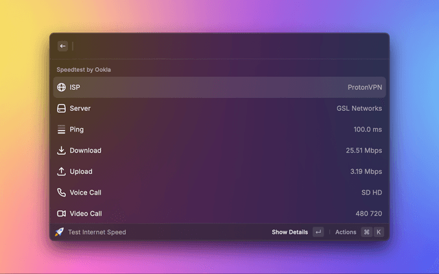 Raycast Speedtest gives you the real-time data you need to: